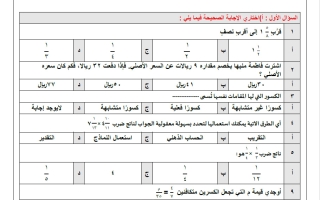 نموذج 3 لاختبار رياضيات الصف السادس الابتدائي الفصل الثاني