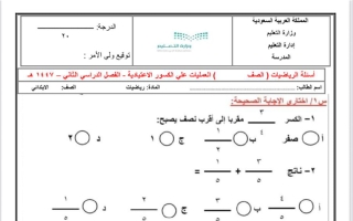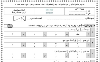 اختبار رياضيات سادس ابتدائي الفصل الثاني