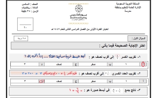 اختبار تجريبي رياضيات سادس ابتدائي الفصل الثاني 1446