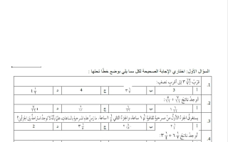 نموذج 1 لاختبار رياضيات الصف السادس الابتدائي الفصل الثاني