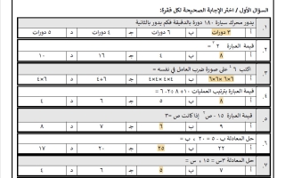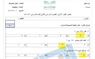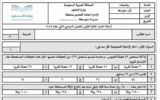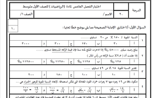 حل اختبار رياضيات للصف الأول المتوسط الفصل الثاني