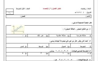 اختبار فصل الاحصاء رياضيات الصف الأول المتوسط الفصل الثاني