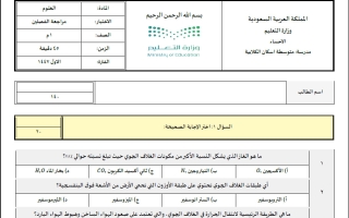 اختبار منتصف الفصل الثاني علوم أول متوسط 1445
