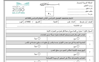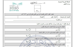 اختبار نهائي علوم أول متوسط الفصل الثاني 1445