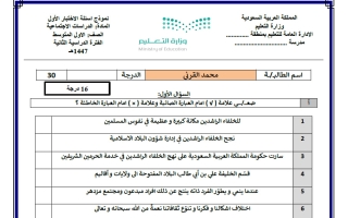 أسئلة الاختبار الأول دراسات اجتماعية للصف الأول المتوسط الفصل الثاني