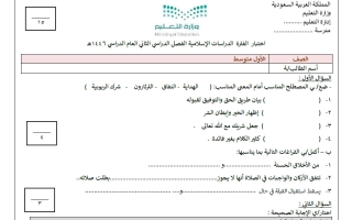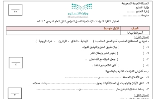 اختبار دراسات اسلامية للصف الأول المتوسط الفصل الثاني