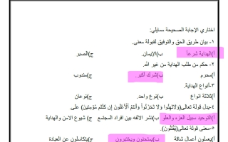 مراجعة محلولة دراسات اسلامية للصف الأول المتوسط الفصل الثاني