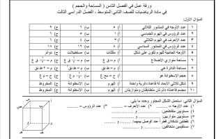 ورقة عمل المساحة والحجم رياضيات الصف الثاني المتوسط الفصل الثاني