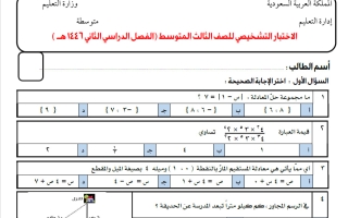 اختبار تشخيصي رياضيات الصف الثالث المتوسط الفصل الثاني
