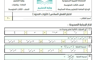 اختبار الفصل السادس (كثيرات الحدود) رياضيات الصف الثالث المتوسط الفصل الثاني