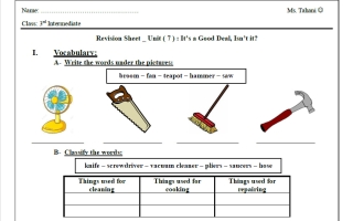 أوراق مراجعة الوحدة السابعة لغة انجليزية للصف الثالث المتوسط الفصل الثاني