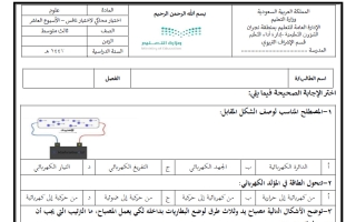 نماذج تدريب على الإختبارات علوم ثالث متوسط الفصل الثاني