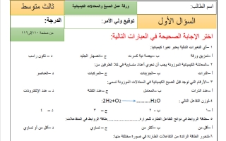 أوراق عمل علوم الصف الثالث المتوسط الفصل الثاني